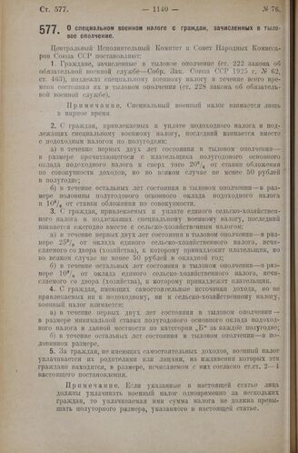 Постановление Президиума Центрального Исполнительного Комитета. О специальном военном налоге с граждан, зачисленных в тыловое ополчение. 6 ноября 1925 г. // Распубликовано в № 261 Известий ЦИК Союза ССР и ВЦИК от 15 ноября 1925 г.
