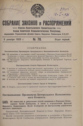 Постановление Президиума Центрального Исполнительного Комитета. Об изменении и дополнении статей положения о Народном Комиссариате Путей Сообщения, в связи с определением функций Народного Комиссариата Путей Сообщения по Центральному управлению ме...