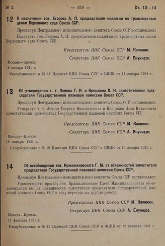 Известия ЦИК Союза ССР и ВЦИК от 19 января 1931 г., № 19.