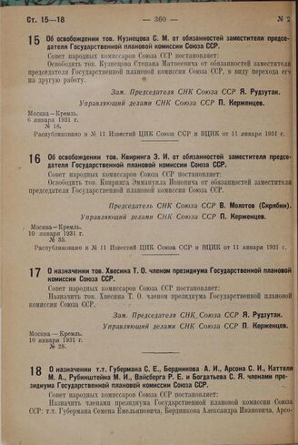 Главная Собрание законов и распоряжений правительства РСФСР и СССР Собрание законов и распоряжений Рабоче-Крестьянского Правительства ... Собрание законов и распоряжений Рабоче-крестьянского правительства ... Собрание законов и распоряжений Рабоче-Крестьянского Правительства ... Документы О назначении т.т. Губермана С. Е., Бердникова А. И., Арсона С. И., ...