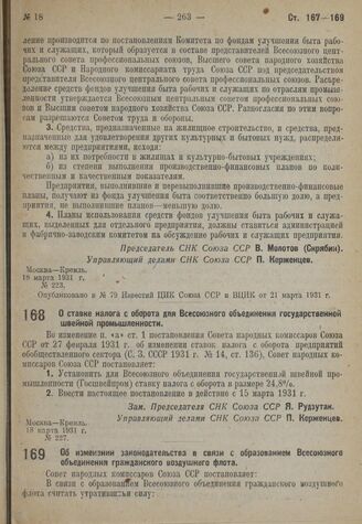 Постановление Совета народных комиссаров. Об изменении законодательства в связи с образованием Всесоюзного объединения гражданского воздушного флота. 18 марта 1931 г. № 224
