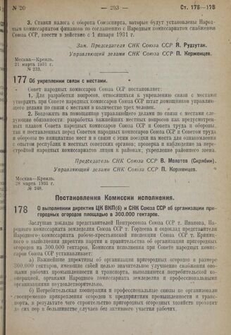 Постановление Комиссии исполнения. О выполнении директив ЦК ВКП(б) и СНК Союза ССР об организации пригородных огородов площадью в 300.000 гектаров. 3 апреля 1931 г.