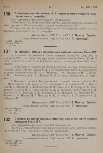 Собрание законов и распоряжений Рабоче-Крестьянского Правительства СССР за 1931 г. № 1-8, 10-22. Отдел второй. — М., б. г.