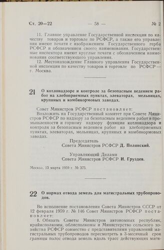 Главная Собрание законов и распоряжений правительства РСФСР и СССР Собрание законов и распоряжений Рабоче-Крестьянского Правительства ... Собрание постановлений правительства РСФСР за 1959 г. № 1-21 Документы Постановление Совета Министров РСФСР. О котлонадзоре и контроле за ...