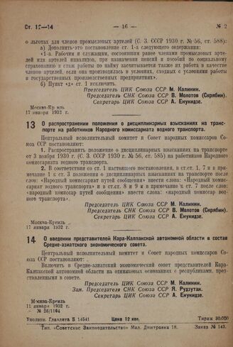 Постановление Центрального Исполнительного Комитета и Совета Народных Комиссаров. О введении представителей Кара-Калпакской автономной области в состав Средне-азиатского экономического совета. 11 января 1932 г. № 26/1104