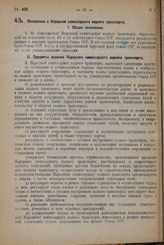 Постановление Центрального Исполнительного Комитета и Совета Народных Комиссаров. Положение о Народном комиссариате водного транспорта. 27 января 1932 г. № 27/46