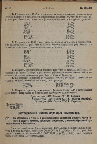 Главная Собрание законов и распоряжений правительства РСФСР и СССР Собрание законов и распоряжений Рабоче-Крестьянского Правительства ... Собрание законов и распоряжений Рабоче-крестьянского правительства ... Собрание законов и распоряжений Рабоче-Крестьянского Правительства ... Документы Постановление Совета Народных Комиссаров. Об обращении в 1932 г. в ...