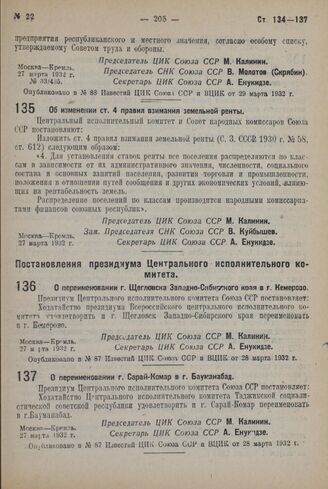 Постановление Центрального Исполнительного Комитета и Совета Народных Комиссаров. Об изменении ст. 4 правил взимания земельной ренты. 27 марта 1932 г.