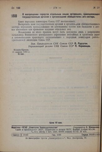 Главная Собрание законов и распоряжений правительства РСФСР и СССР Собрание законов и распоряжений Рабоче-Крестьянского Правительства ... Собрание законов и распоряжений Рабоче-крестьянского правительства ... Собрание законов и распоряжений Рабоче-Крестьянского Правительства ... Документы Постановление Совета Народных Комиссаров. О воспрещении передачи от...