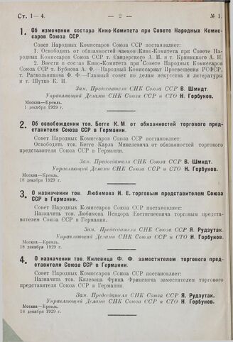 О назначении тов. Любимова И.Е. торговым представителем Союза ССР в Германии. 18 декабря 1929 г.