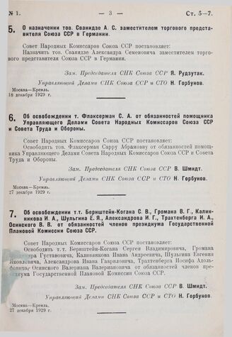 Об освобождении т. Флаксерман С.А. от обязанностей помощника Управляющего Делами Совета Народных Комиссаров Союза ССР и Совета Труда и Обороны. 27 декабря 1929 г.