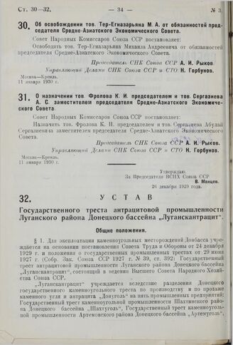 Собрание законов и распоряжений Рабоче-Крестьянского Правительства СССР за 1930 г. № 1-10, 12-35. Отдел второй. — М., б. г.