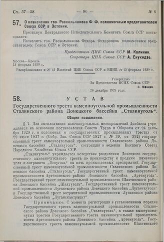 Известия ЦИК Союза ССР и ВЦИК от 15 февраля 1930 г., № 45.