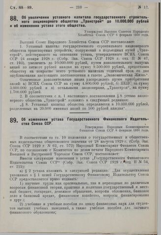 Об изменении устава Государственного Финансового Издательства Союза ССР. Утверждено Народным Комиссариатом Финансов СССР 8 февраля 1930 г.
