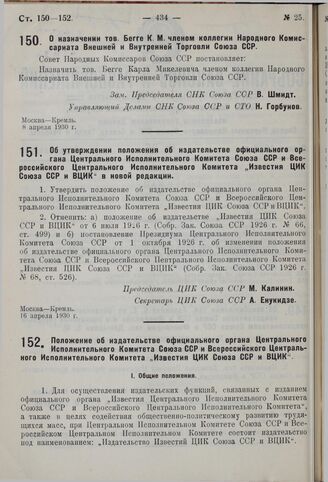 Собрание законов и распоряжений Рабоче-Крестьянского Правительства СССР за 1930 г. № 1-10, 12-35. Отдел второй. — М., б. г.