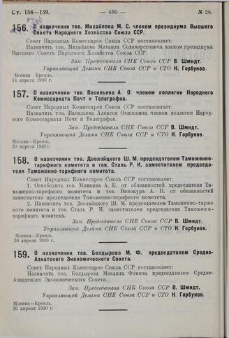 О назначени тов. Болдырева М.Ф. председателем Средне-Азиатского Экономического Совета. 20 апреля 1930 г.
