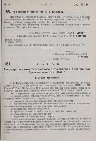 О назначении пенсии тов. Е.Я. Шульгину. 21 апреля 1930 г. // Распубликовано в № 127 Известий ЦИК Союза ССР и ВЦИК от 10 мая 1930 г.