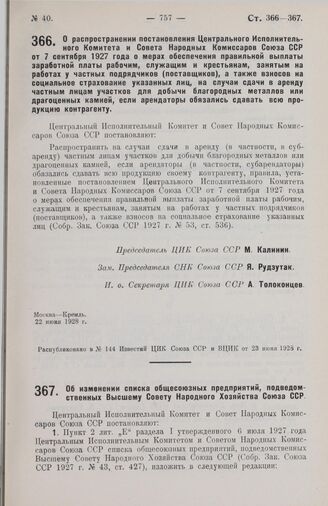 Постановление Центрального Исполнительного Комитета и Совета Народных Комиссаров. О распространении постановления Центрального Исполнительного Комитета и Совета Народных Комиссаров Союза ССР от 7 сентября 1927 года о мерах обеспечения правильной в...