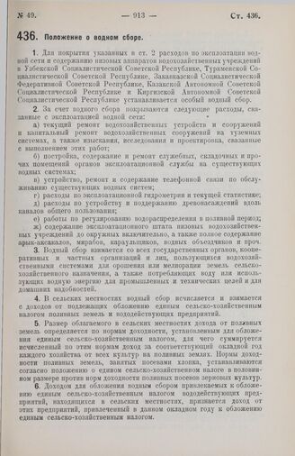 Постановление Центрального Исполнительного Комитета и Совета Народных Комиссаров. Положение о водном сборе. 1 августа 1928 г.