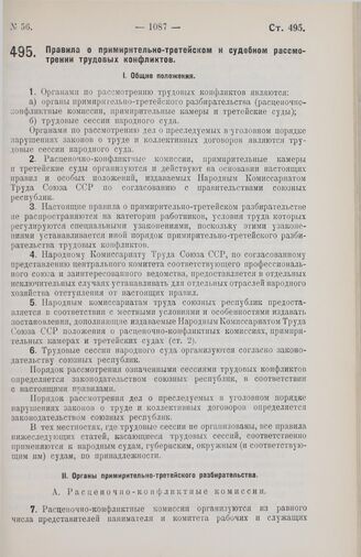 Постановление Центрального Исполнительного Комитета и Совета Народных Комиссаров. Правила о примирительно-третейском и судебном рассмотрении трудовых конфликтов. 29 августа 1928 г.