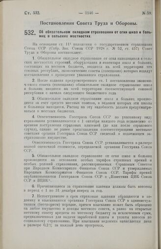 Постановление Совета Труда и Обороны. Об обязательном окладном страховании от огня школ и больниц в сельских местностях. 16 августа 1928 г.