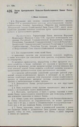 Постановление Центрального Исполнительного Комитета и Совета Народных Комиссаров. Устав Центрального Сельско-Хозяйственного Банка Союза ССР. 29 июня 1927 г.