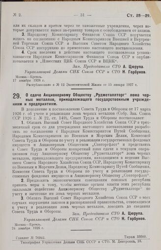 Главная Собрание законов и распоряжений правительства РСФСР и СССР Собрание законов и распоряжений Рабоче-Крестьянского Правительства ... Собрание законов и распоряжений Рабоче-крестьянского правительства ... Собрание законов и распоряжений Рабоче-Крестьянского Правительства ... Документы Постановление Совета Труда и Обороны. О сдаче Акционерному Обществу...