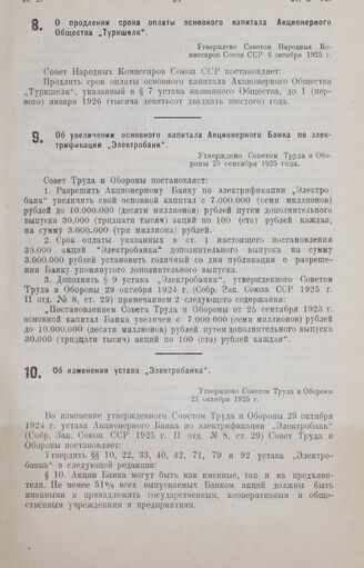 Об увеличении основного капитала Акционерного Банка по электрификации «Электробанк». Утверждено Советом Труда и Обороны 25 сентября 1925 года