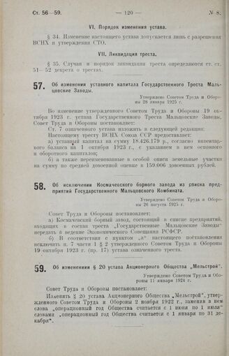 Об изменениии § 20 устава Акционерного Общества «Мельстрой». Утверждено Советом Труда и Обороны 11 января 1924 г.