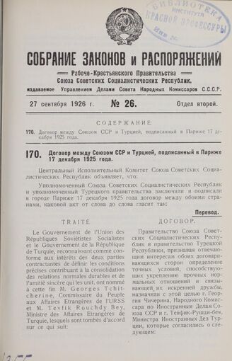 Собрание законов и распоряжений Рабоче-Крестьянского Правительства СССР за 1926 г. № 1-39. Отдел второй. — М., б. г.