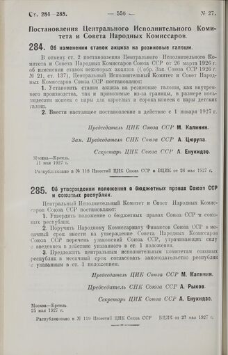 Известия ЦИК Союза ССР и ВЦИК от 26 мая 1927 г., № 118.