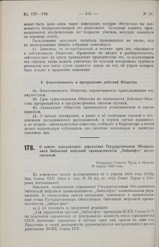 О замене единоличного управления Государственным Объединением Эмбенской нефтяной промышленности «Эмбанефть» коллегиальным. Утверждено Советом Труда и Обороны 30 апреля 1926 года