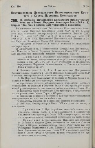 Постановление Центрального Исполнительного Комитета и Совета Народных Комиссаров. Об изменении постановления Центрального Исполнительного Комитета и Совета Народных Комиссаров Союза ССР от 22 февраля 1924 года о военной автотранспортной повинности. 18 мая 1927 г.