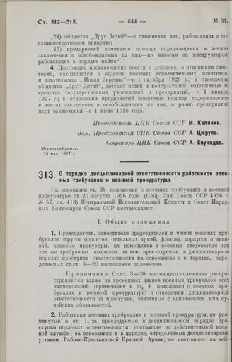 Постановление Центрального Исполнительного Комитета и Совета Народных Комиссаров. О порядке дисциплинарной ответственности работников военных трибуналов и военной прокуратуры. 25 мая 1927 г.