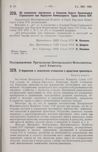 Постановление Центрального Исполнительного Комитета и Совета Народных Комиссаров. Об изменении положения о Союзном Совете Социального Страхования при Народном Комиссариате Труда Союза ССР. 8 июня 1927 г.