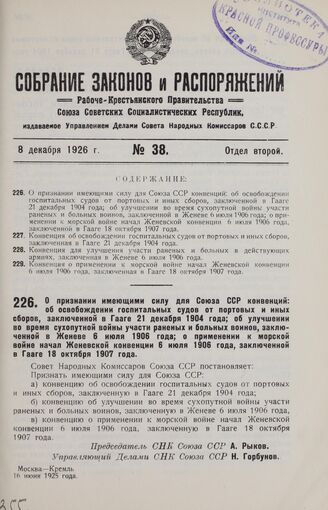 Главная Собрание законов и распоряжений правительства РСФСР и СССР Собрание законов и распоряжений Рабоче-Крестьянского Правительства ... Собрание законов и распоряжений Рабоче-Крестьянского Правительства ... Документы О признании имеющими силу для Союза ССР конвенций: об освобождении ...