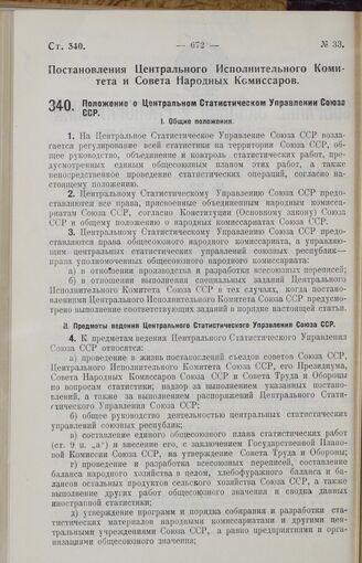 Постановление Центрального Исполнительного Комитета и Совета Народных Комиссаров. Положение о Центральном Статистическом Управлении Союза ССР. 11 мая 1927 г.