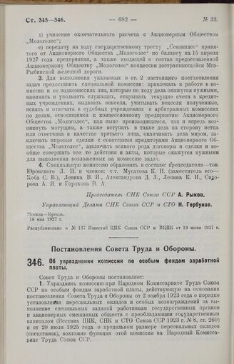 Постановление Совета Труда и Обороны. Об упразднении комиссии по особым фондам заработной платы. 27 мая 1927 г.