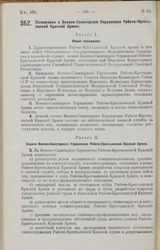 Постановление Центрального Исполнительного Комитета и Совета Народных Комиссаров. Положение о Военно-Санитарном Управлении Рабоче-Крестьянской Красной Армии. 15 июня 1927 г.