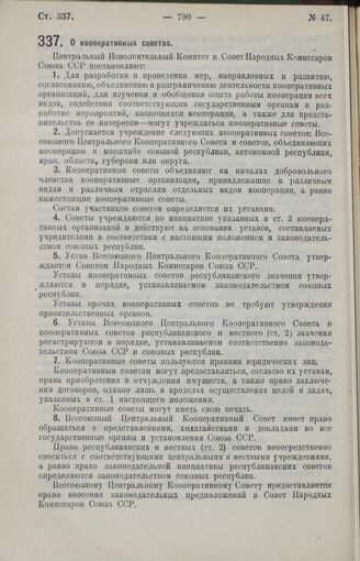 Постановление Центрального Исполнительного Комитета и Совета Народных Комиссаров. О кооперативных советах. 12 июля 1926 г.