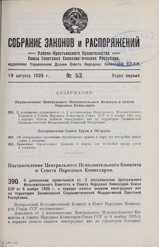 Постановление Центрального Исполнительного Комитета и Совета Народных Комиссаров. О дополнении примечанием ст. 2 постановления Центрального Исполнительного Комитета и Совета Народных Комиссаров Союза ССР от 6 ноября 1925 года о порядке оплаты акци...