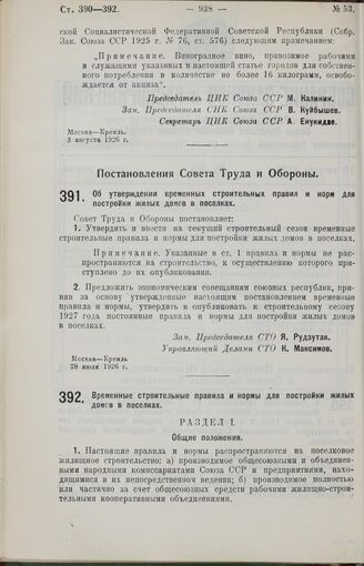 Главная Собрание законов и распоряжений правительства РСФСР и СССР Собрание законов и распоряжений Рабоче-Крестьянского Правительства ... Собрание законов и распоряжений Рабоче-крестьянского правительства ... Собрание законов и распоряжений Рабоче-Крестьянского Правительства ... Документы Постановление Совета Труда и Обороны. Об утверждении временных стро...