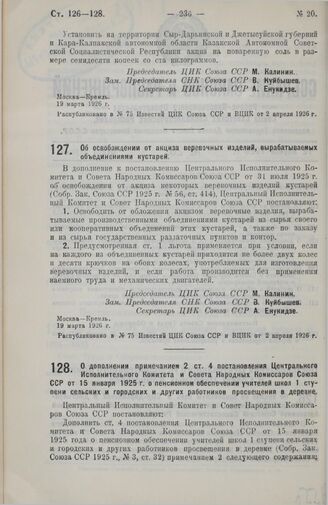Известия ЦИК Союза ССР и ВЦИК от 2 апреля 1926 г., № 75.