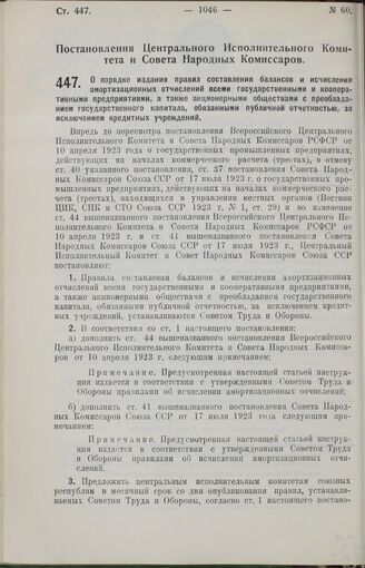 Постановление Центрального Исполнительного Комитета и Совета Народных Комиссаров. О порядке издания правил составления балансов и исчисления амортизационных отчислений всеми государственными и кооперативными предприятиями, а также акционерными общ...