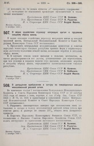 Постановление Центрального Исполнительного Комитета и Совета Народных Комиссаров. О мерах содействия переходу кочующих цыган к трудовому оседлому образу жизни. 1 октября 1926 г.