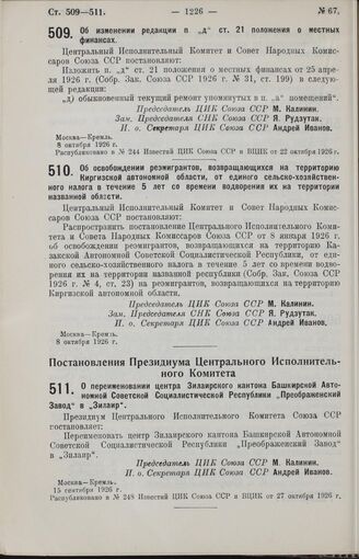 Известия ЦИК Союза ССР и ВЦИК от 22 октября 1926 г., № 244.