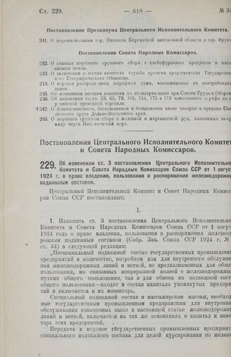 Постановление Центрального Исполнительного Комитета и Совета Народных Комиссаров. Об изменении ст. 3 постановления Центрального Исполнительного Комитета и Совета Народных Комиссаров Союза ССР от 1 августа 1924 г. о праве владения, пользования и ра...