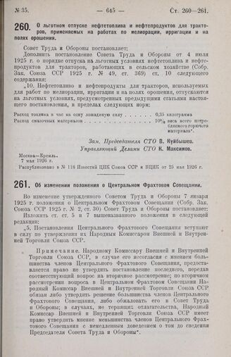 Постановление Совета Труда и Обороны. Об изменении положения о Центральном Фрахтовом Совещании. 7 мая 1926 г.
