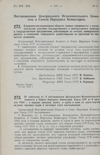 Постановление Центрального Исполнительного Комитета и Совета Народных Комиссаров. Об изменении ст. 6. постановления Центрального Исполнительного Комитета и Совета Народных Комиссаров Союза ССР от 8 августа 1924 г. о порядке продажи, залога и сдачи...