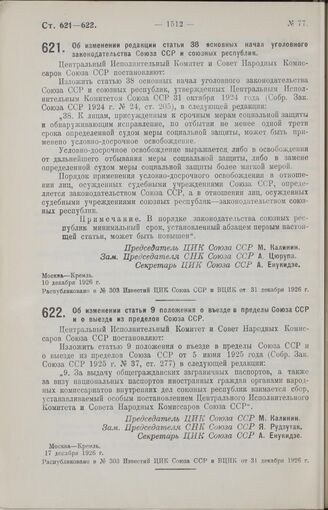 Известия ЦИК Союза ССР и ВЦИК от 31 декабря 1926 г., № 303.